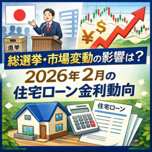 衆議院の解散・総選挙を控え、国内では財政や金融政策を巡る議論が活発化しています。一方、海外では金融市場の変動が続き、為替や債券市場の動きが各国の金利に影響を与える場面も増えています。こうした政治・経済環境のなか、2026年2月の住宅ローン金利が出そろいました。変動金利は一部のネット銀行で利上げが始まり、固定金利タイプやフラット35は、長期金利の急上昇を受けて大幅な利上げが続いています。今回のコラムでは、2月3日現在の住宅ローン金利の動きと、その背景にある金融政策・市場環境を整理します。