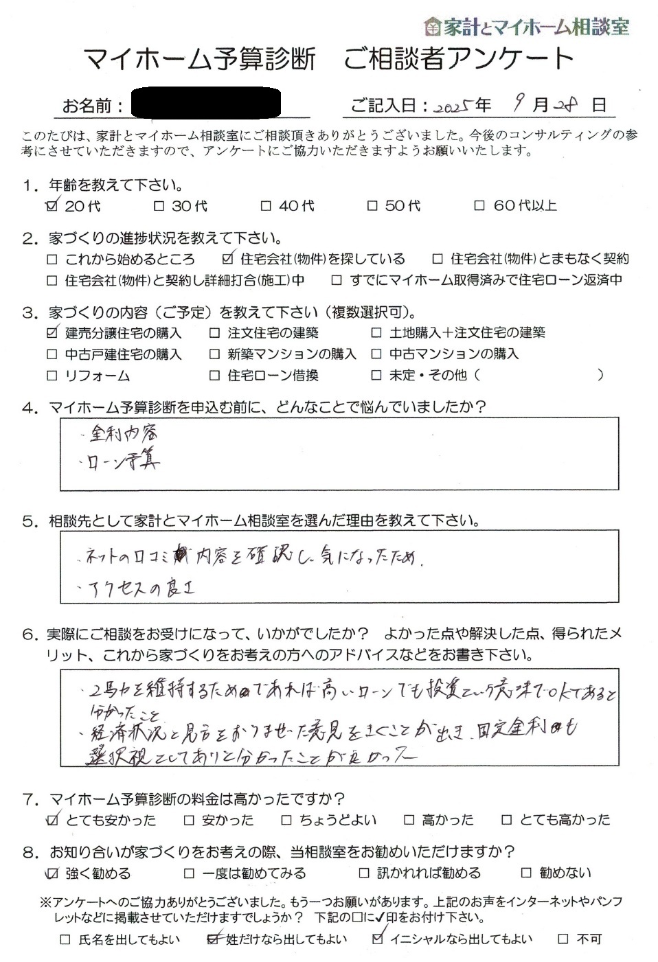 昨日、戸建て住宅の購入をご検討中の刈谷市F.N様にマイホーム予算診断をご提出し、そのご感想を頂きました。イニシャルでの公表をご了承頂きましたので、以下、ご紹介いたします。